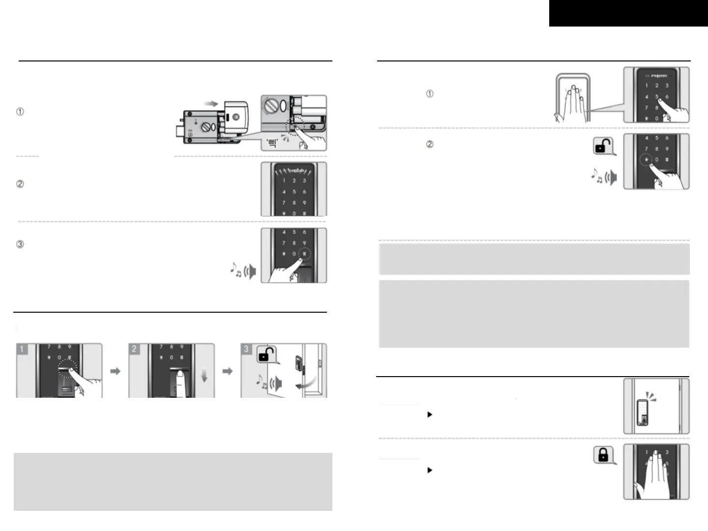 - If you sweep unregistered fingerprint more then 5 times, the lock will