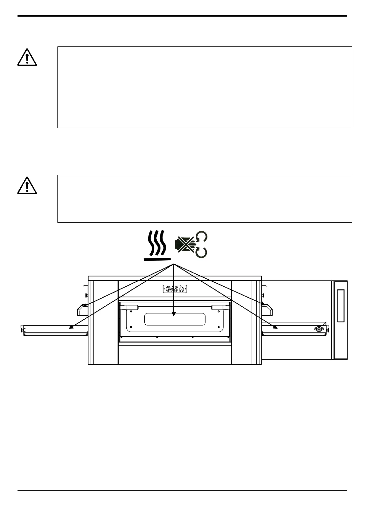 WARNING: PAY ATTENTION WHEN OPENING THE DOOR, BURN HAZARD AND HAND