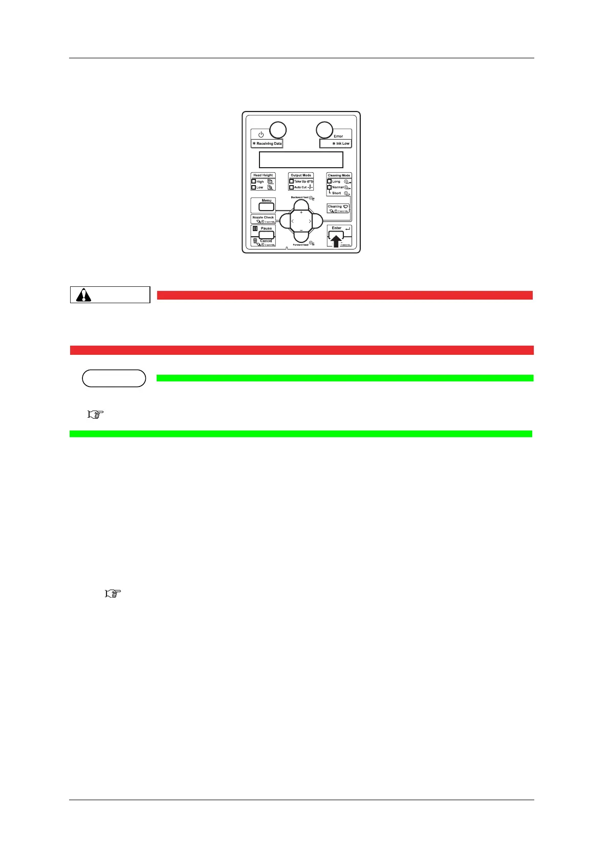 • While “Warming Up” is displayed, do not touch Platen and Media guide.