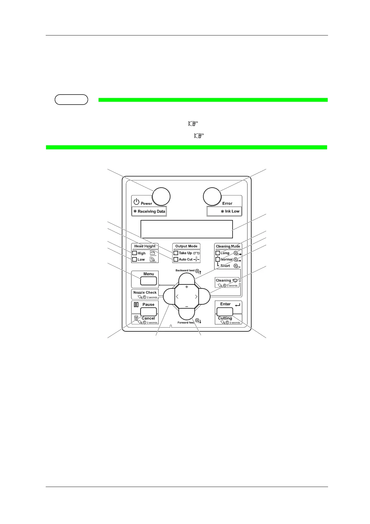 Used to set the operating conditions, to display the status of the printer, and to set various functions.