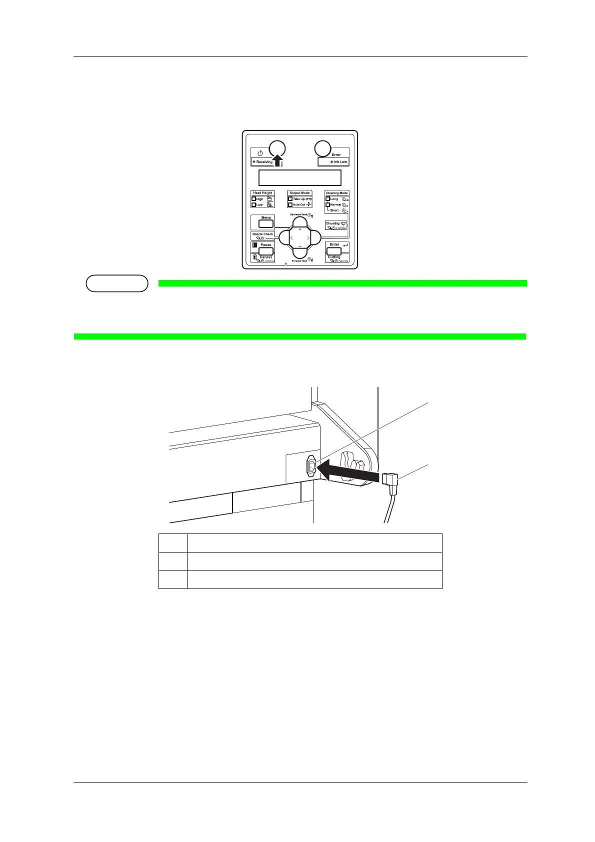 • The power is ON when the [Power] key of the operation panel is pressed in.