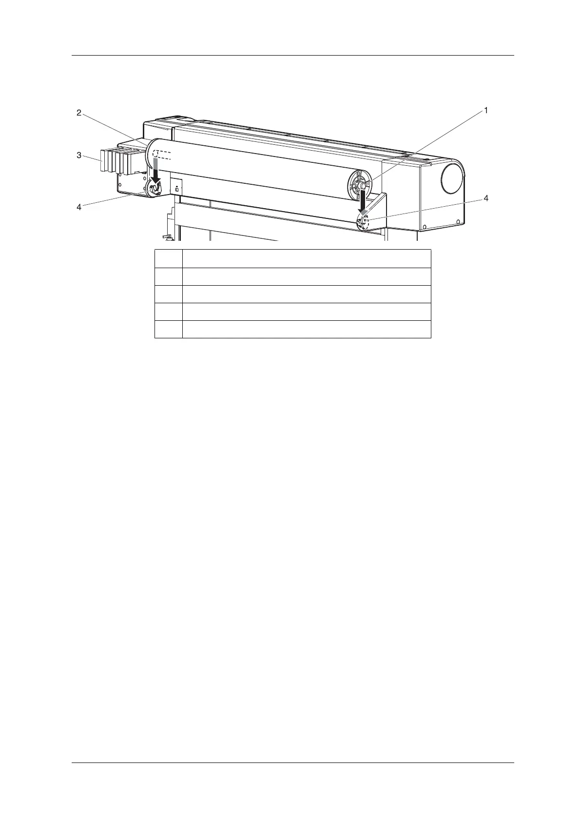5. Set the scroller on the holder with the fixed media stopper on the ink cartridge slot side.