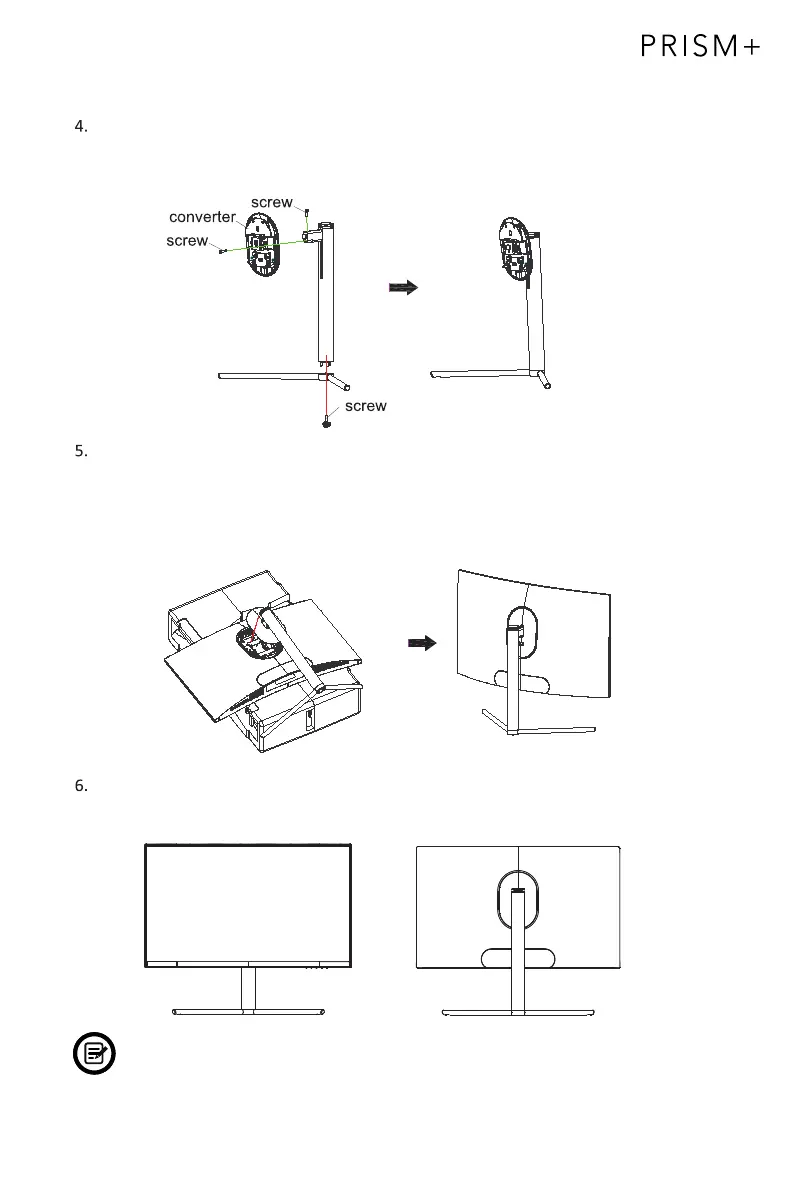 screws as shown in the picture. Then fasten the stand stem and stand base