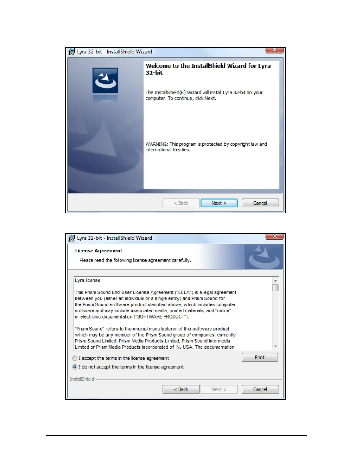 · You will be asked to agree to the Lyra EULA - if you agree, click 'Yes':