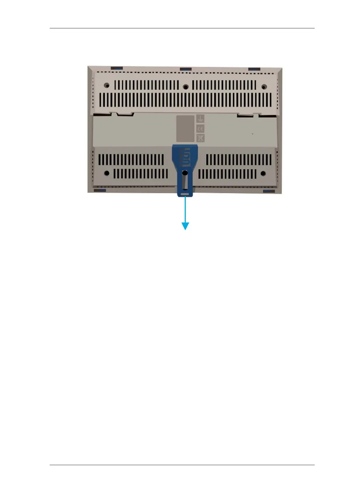 6. Unlock the hardware by placing a screwdriver in the blue locking clip on the bottom of the