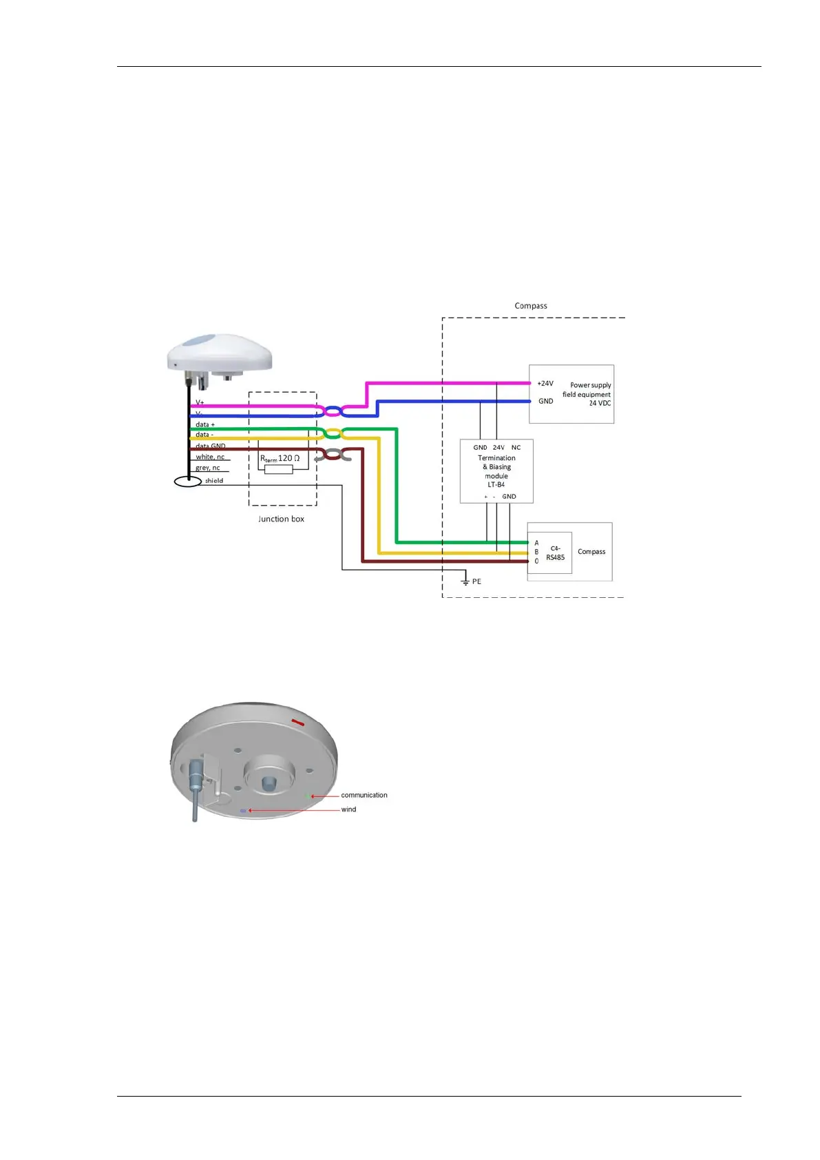 5. Connect the cores for power supply to the 24 VDC power supply for Compass field equipment.