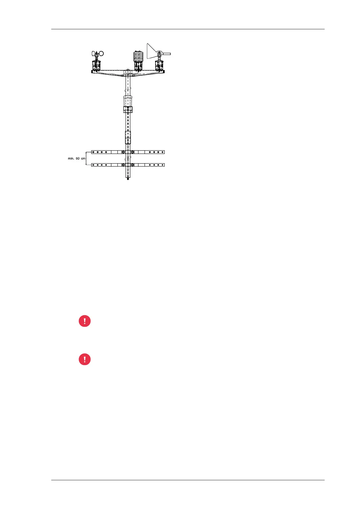 12. Place the mast in both wall brackets. The base of the mast must protrude at least 10 cm in
