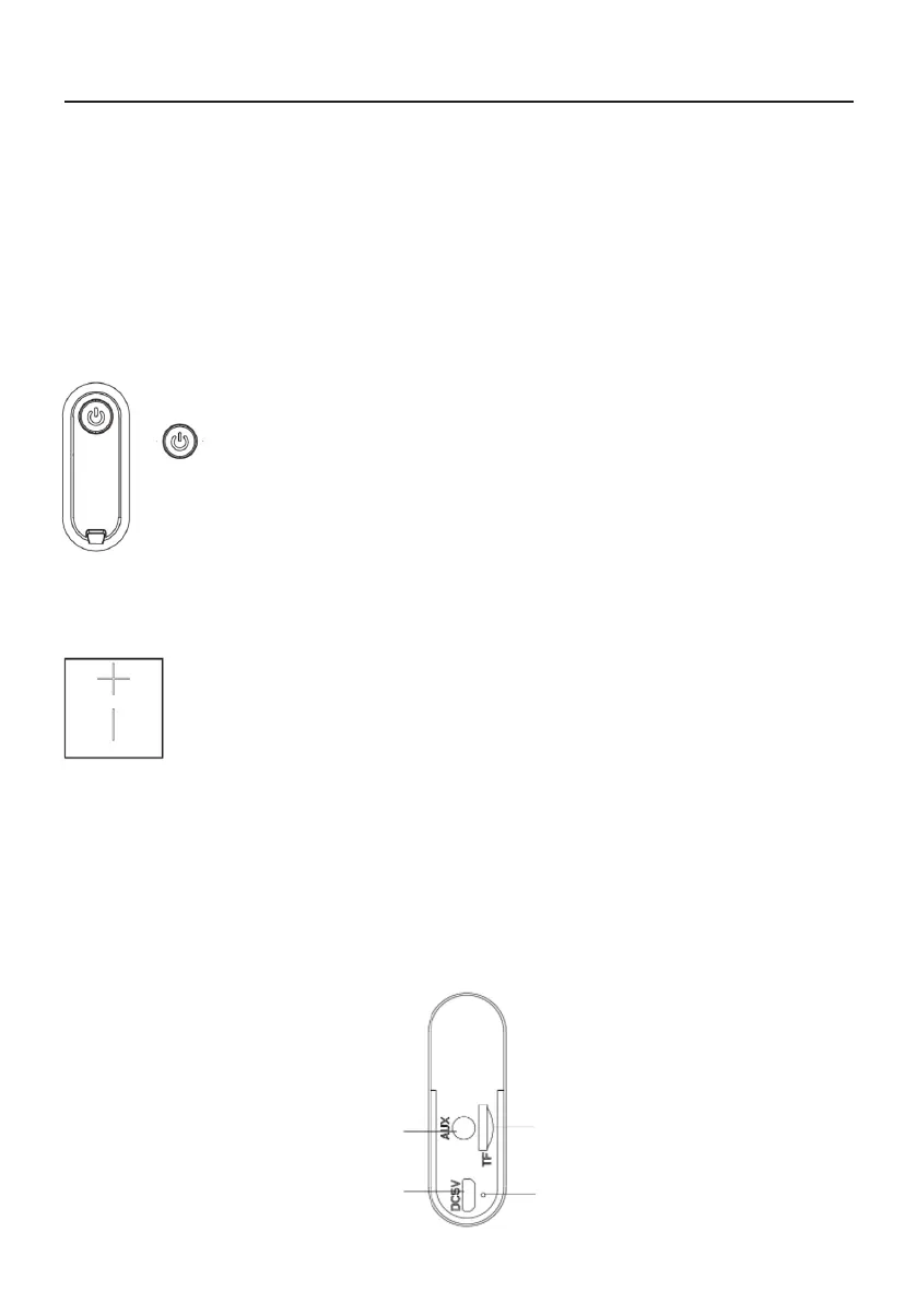 Lange drücken für vorherigen Titel. Kurz drücken für niedrigere Lautstärke.
