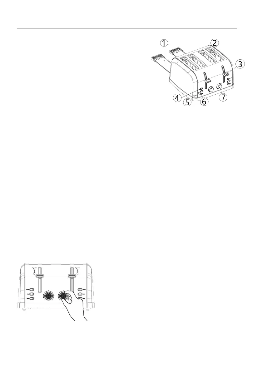 2. Fentes pour insérer le pain (fentes de grillage)