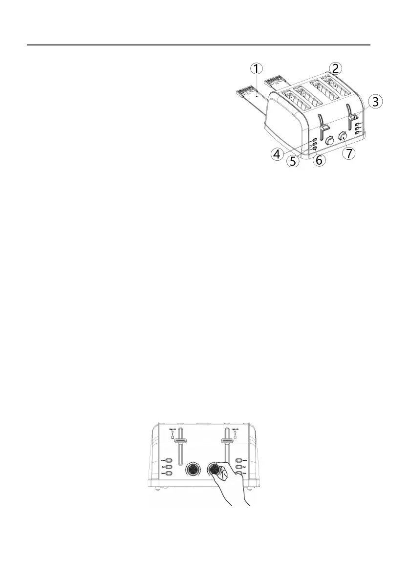7. Regler zum Regulieren der Toaststärke (1-7)