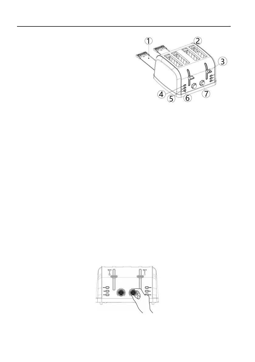 2. Ranhuras para introduzir o pão (ranhuras