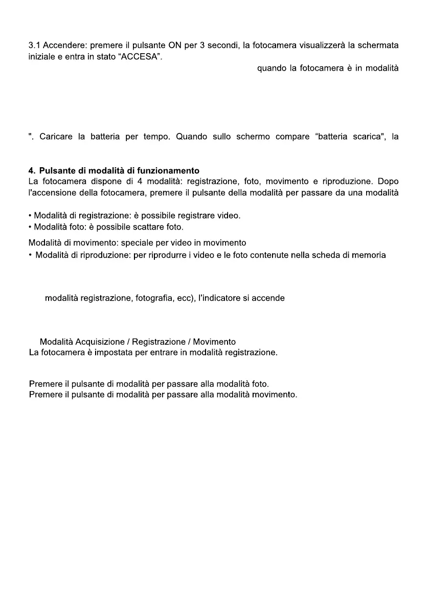 3.3 Spegnimento automatico: La fotocamera si spegne automaticamente quando resta inattiva