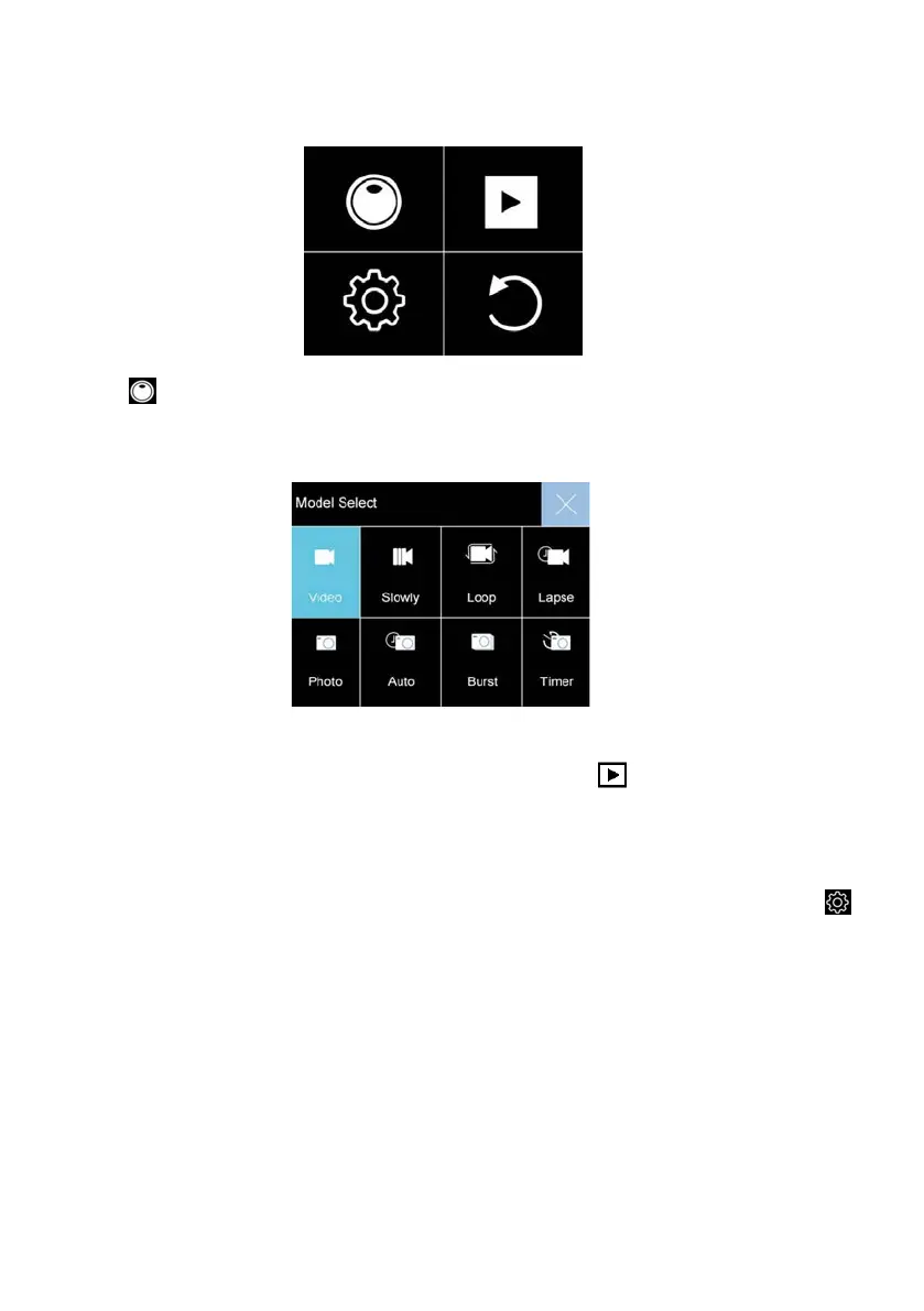 Druk op de Modusknop om de modus voor video/foto-instelling, systeeminstelling of