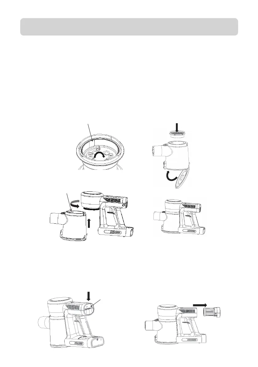 fronteira do depósito de pó com a parte inflável da unidade, depois rode o depósito do