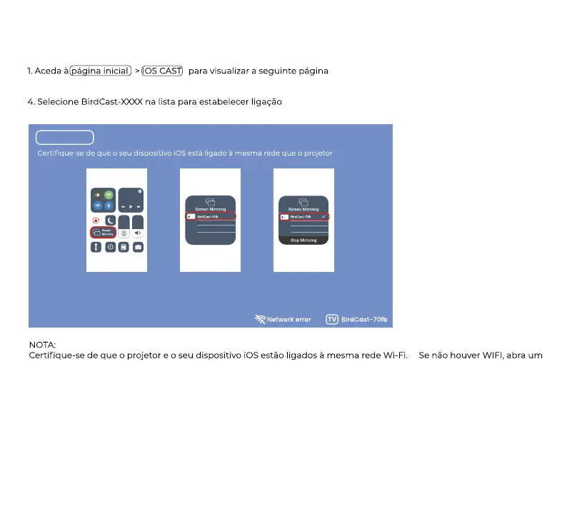 ponto de acesso no seu dispositivo IOS e ligue o projetor ao mesmo.