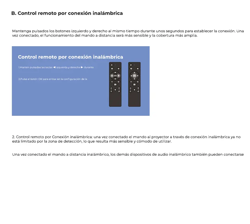 Por favor, mantenga activado la conexión inalámbrica del proyector para asegurarse de que el mando a distancia inalámbrico