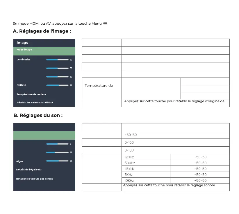 RÉGLAGES DE L'IMAGE ET DU SON
