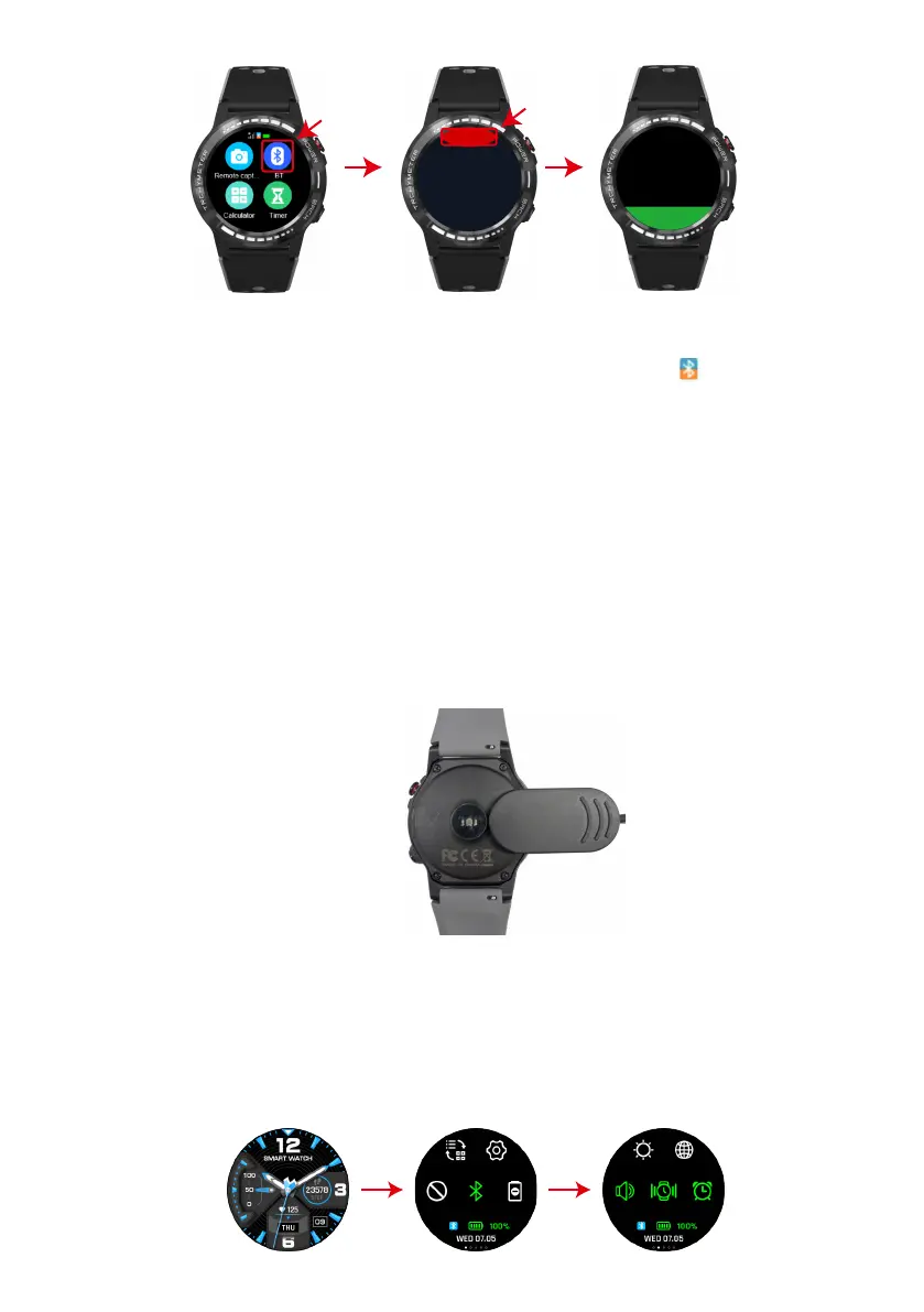 quatre tiges dorées. Vous verrez l'icône de charge s'afficher sur la montre après environ 6 s.
