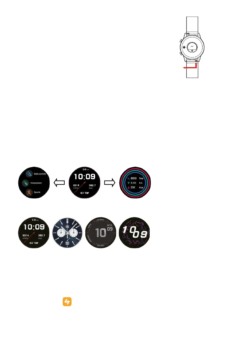 Mientras el Smartwatch está en modo reloj, mantenga pulsado en el centro de la pantalla