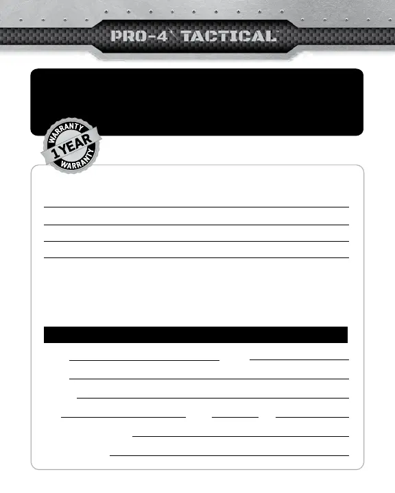 Register your unit online: www.Pro-4Tactical.com/warranty-registration.