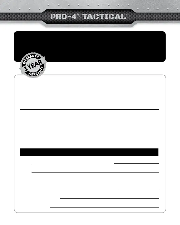 Register your unit online: www.Pro-4Tactical.com/warranty-registration.