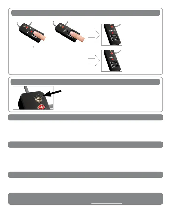 • If your padlock starts acting abnormally, try resetting: use any registered ngerprint (user or administrator) on the sensor,