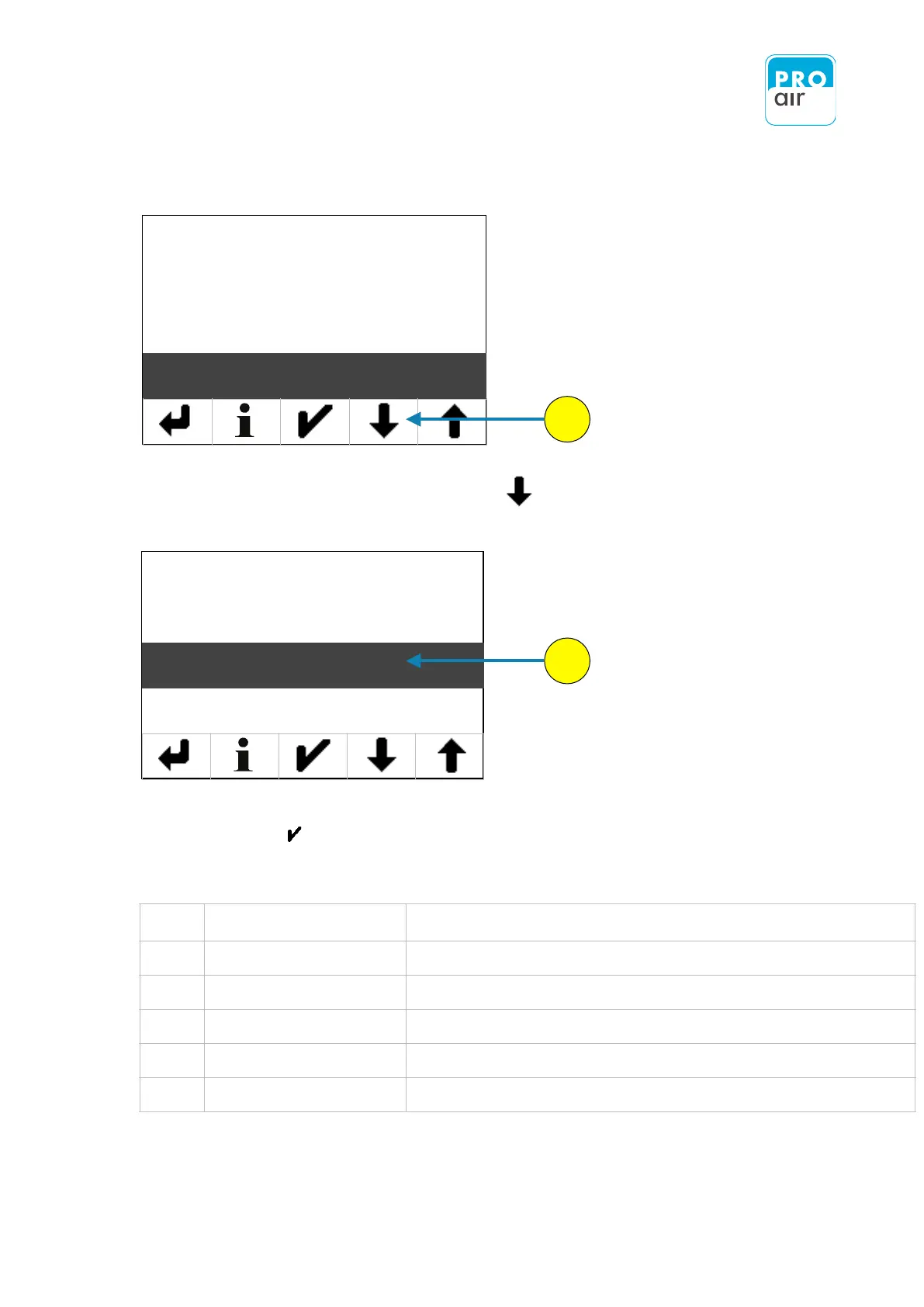 8. Please scroll down with „Scroll-down“ key until you see the following screen.