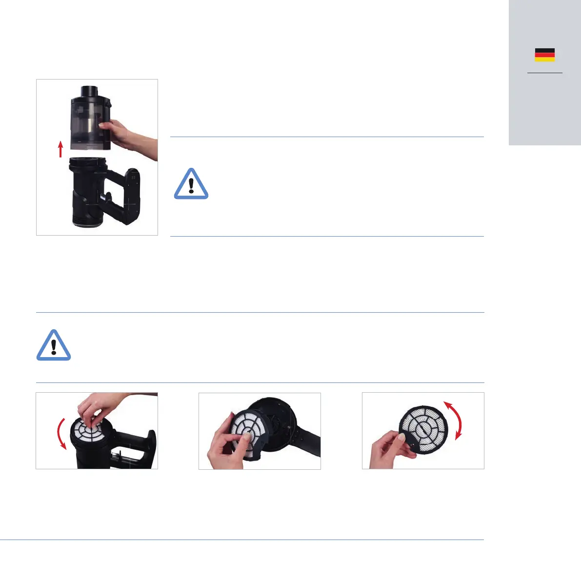 1. Befolgen Sie die Anweisungen in Abschnitt „Reinigen des Staubbehälters“, um den
