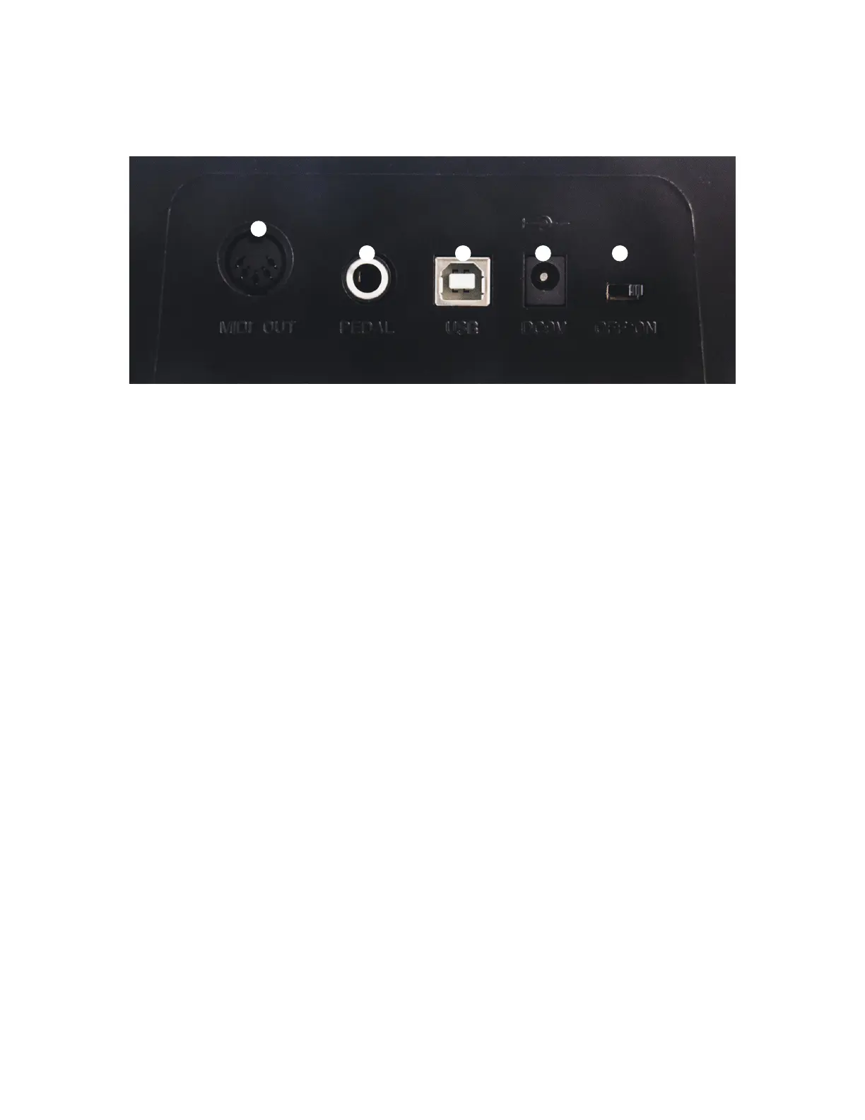 2. PEDAL: The 1/4" Pedal jack is for connecting a Sustain Pedal or Momentary