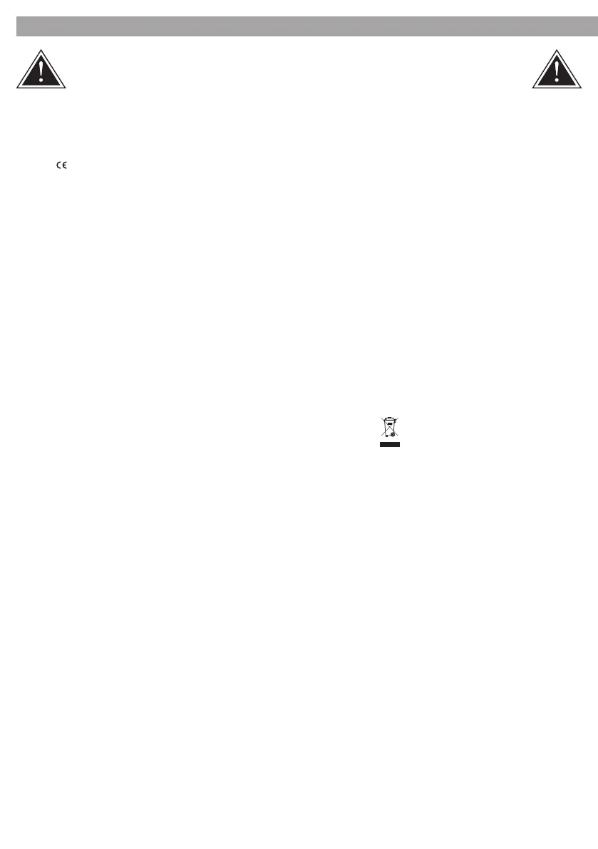 • Il dispositivo funziona con pericolosa tensione di rete 230V~. Non intervenire mai al suo interno al di fuori delle ope-