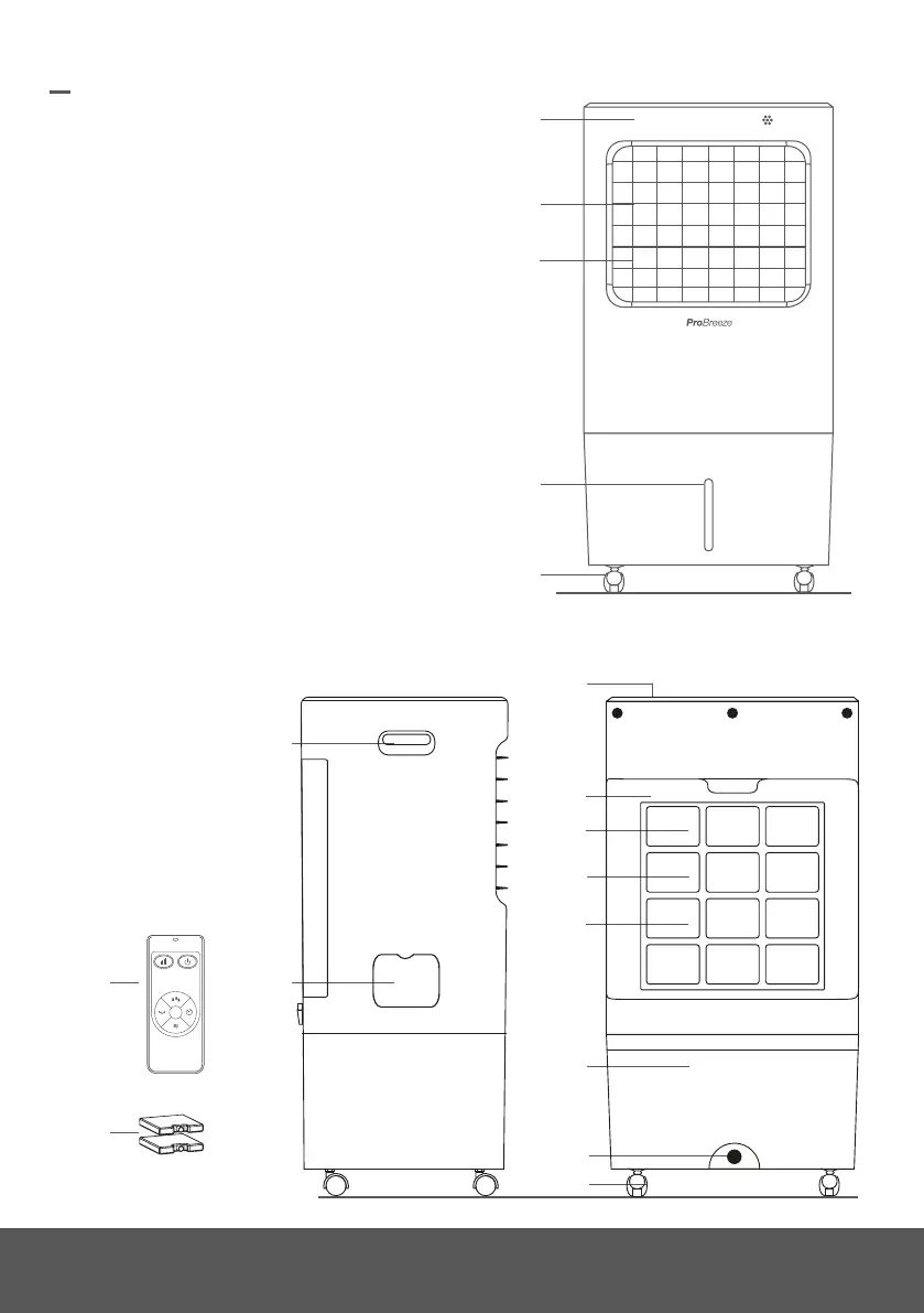 Pro Breeze PB-AC03 - Parts; Front View; Rear View; Side View