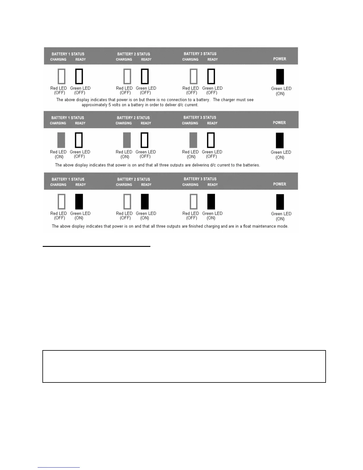 Below is an example of the display on a Three output Recreation Series Charger (RS3):
