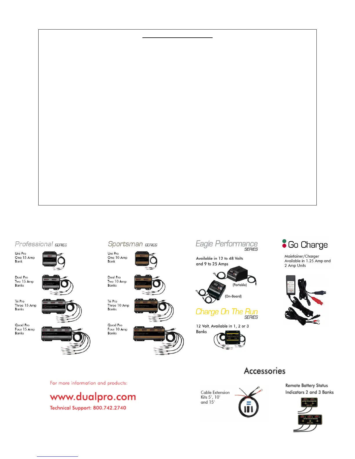 Please call Pro Charging Systems, LLC (800.742.2740) for full warranty information and/or service.