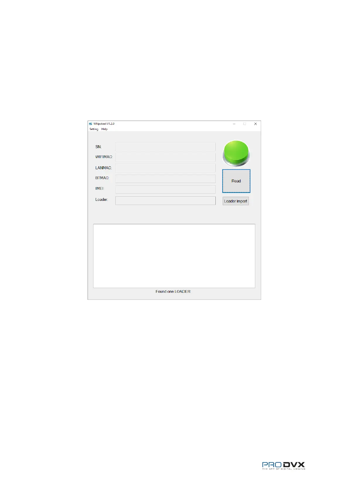 turn green and at the bottom of the window “Found one LOADER” will be displayed.