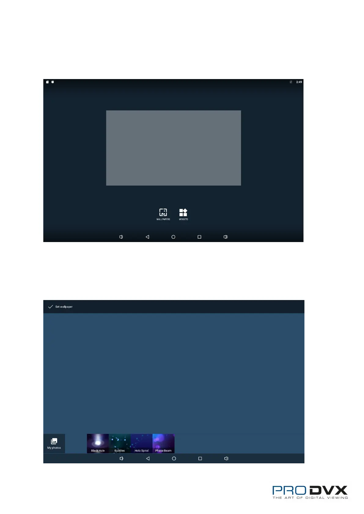 Pro DVX APPC-10SLB - Home Screen Customization; Change Wallpaper