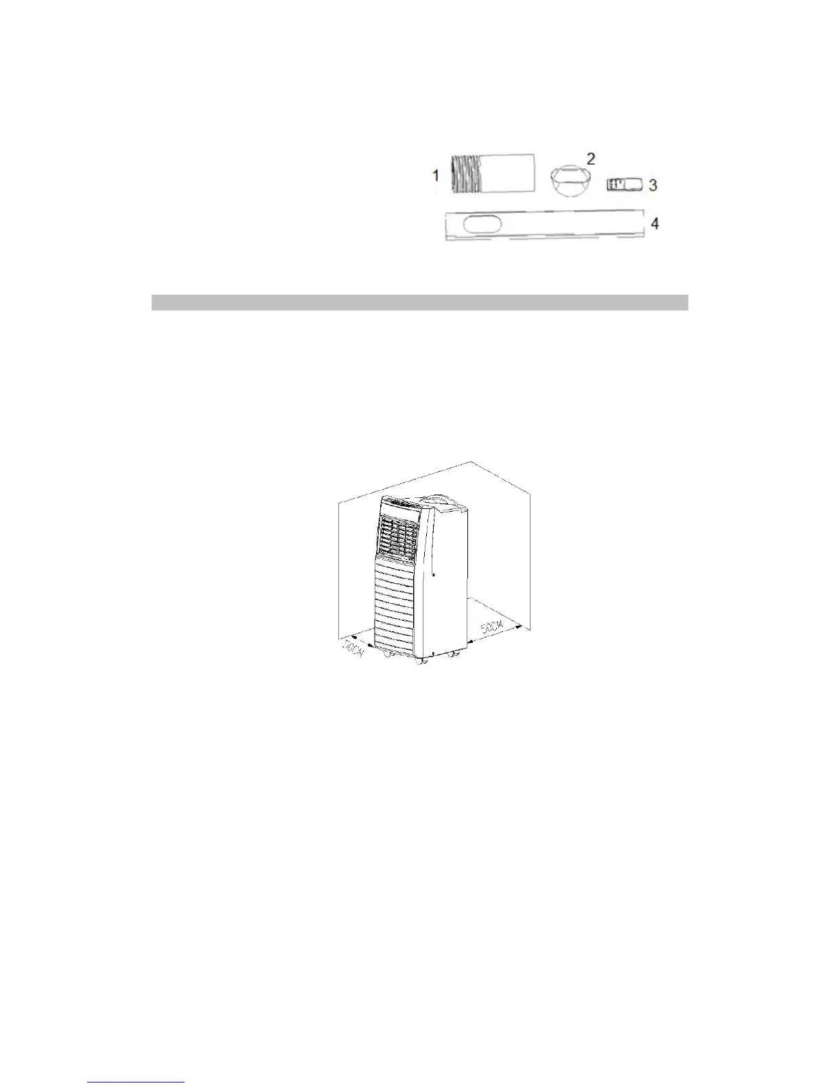 3. Place the air conditioner at least 50 cm away from any other wall, curtains or heat sources to
