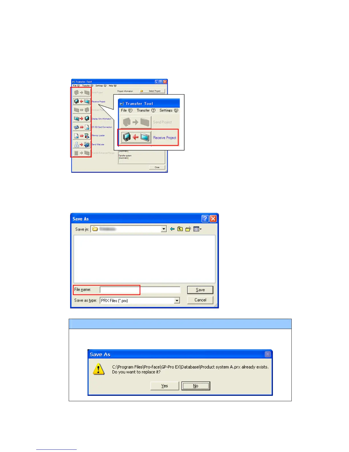 (4) Start GP-Pro EX Transfer Tool and click the [Receive Project] button.
