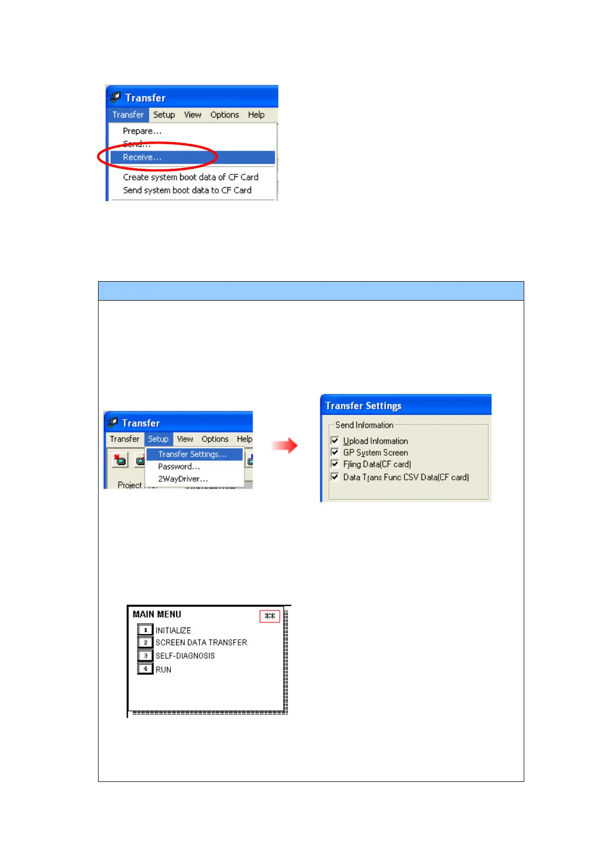 “Upload Information” is necessary to receive screen data from GP-577RT/S. It