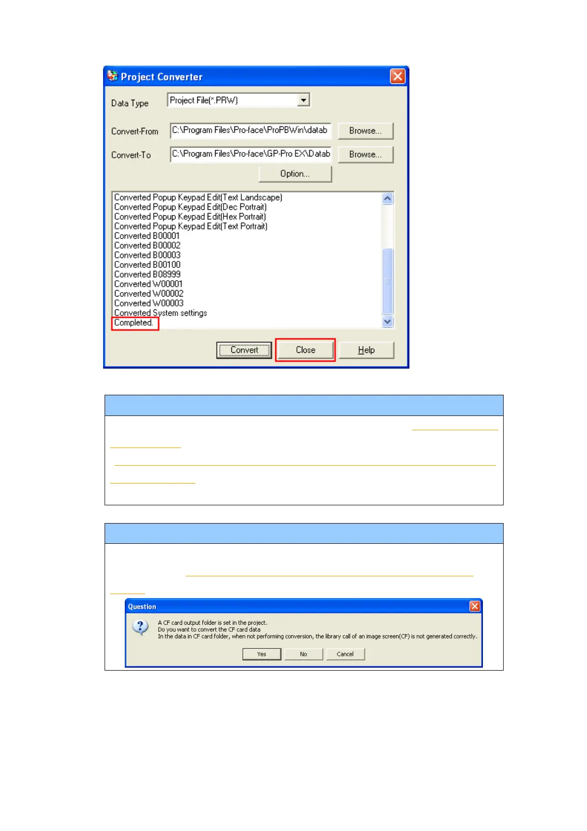 Please refer to Convert GP-PRO/PBIII for Windows’ ”Destination CF Card