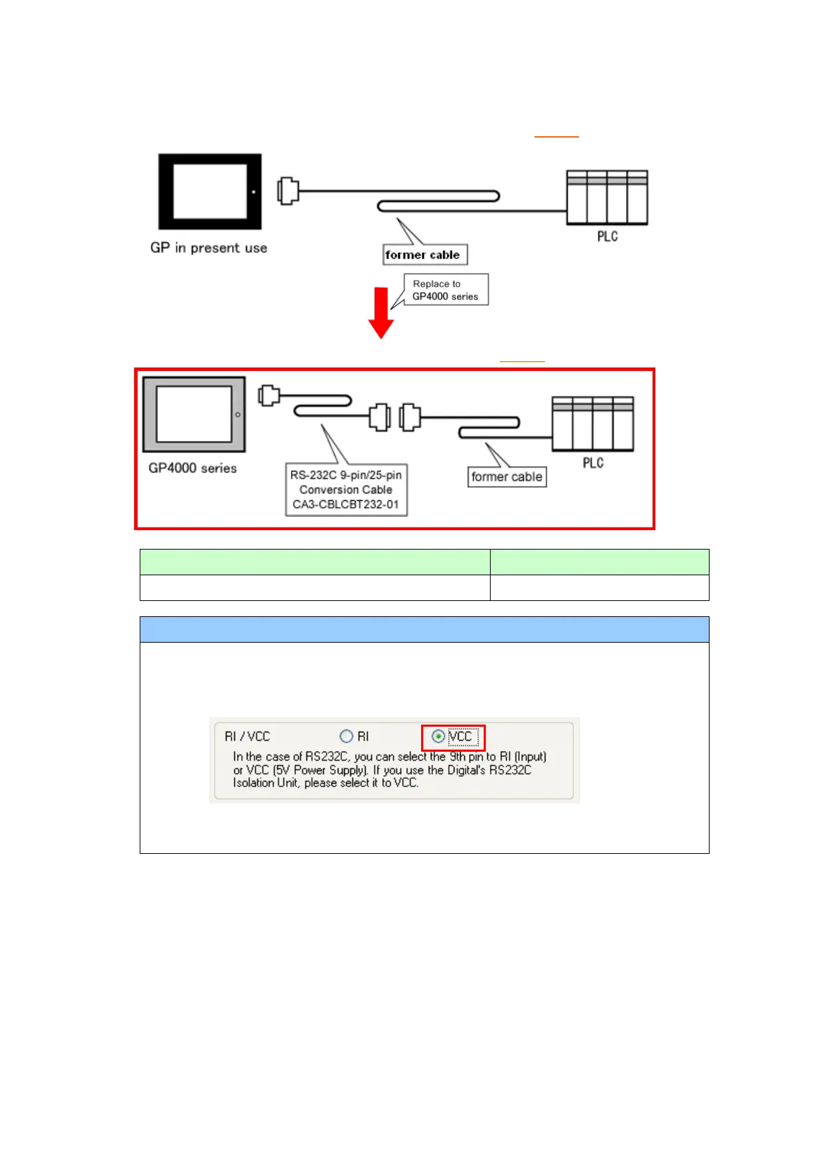with GP-2500 series, be sure to select “VCC” in the Device/PLC Setting on GP-Pro