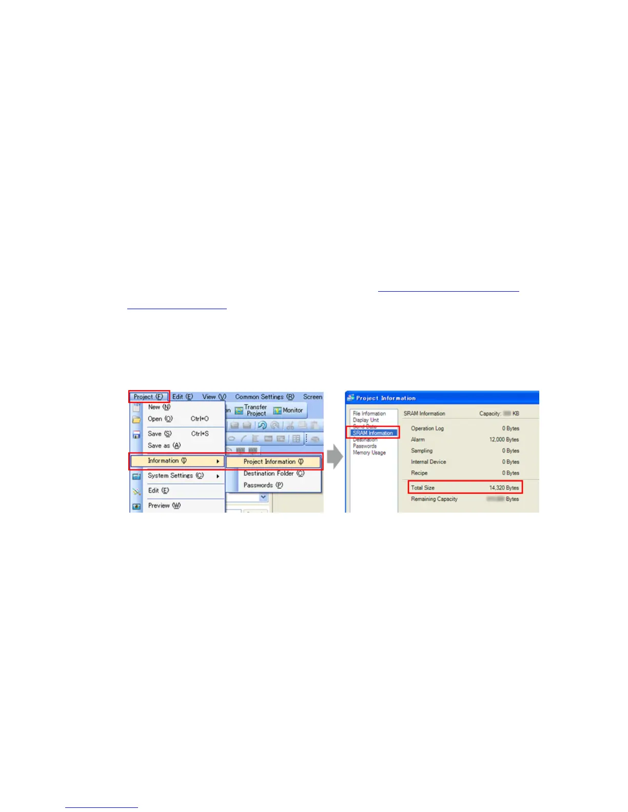 (4) Click [SRAM Information] to see SRAM size.