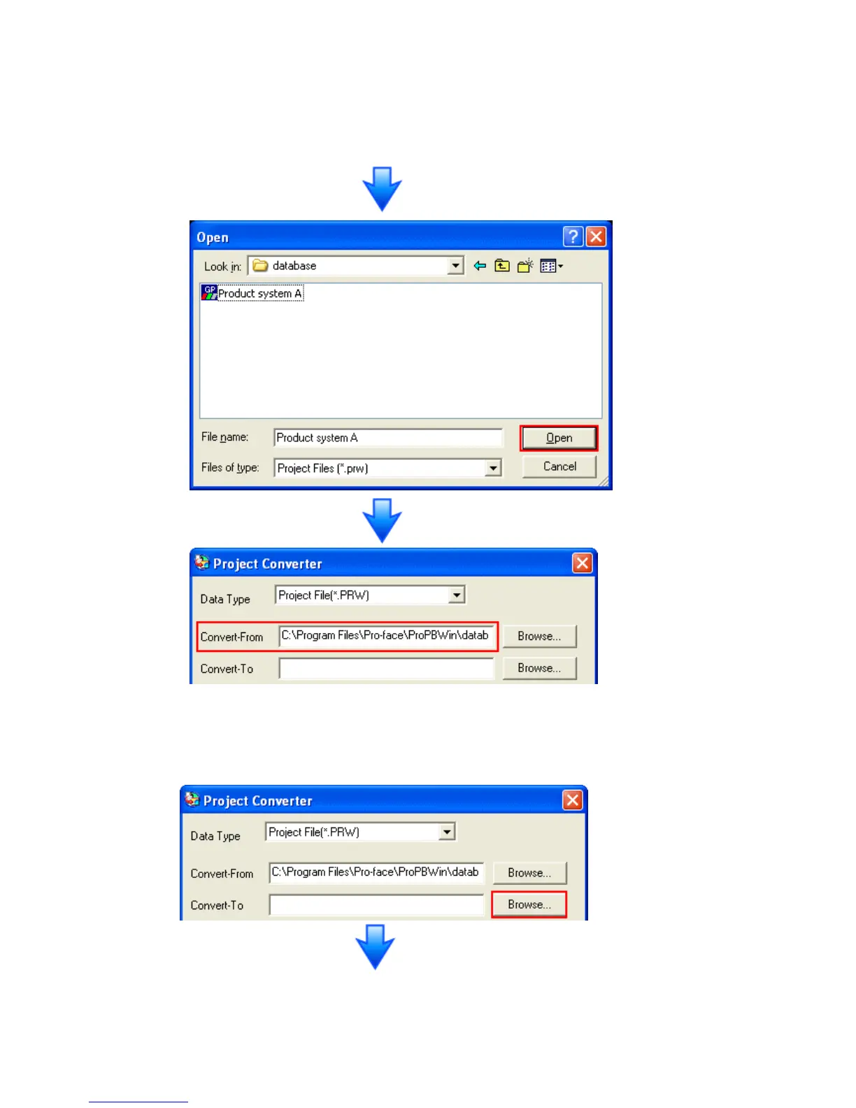 (4) In [Convert-To], designate a GP-Pro EX’s project file (*.prx). Click the [Browse…]