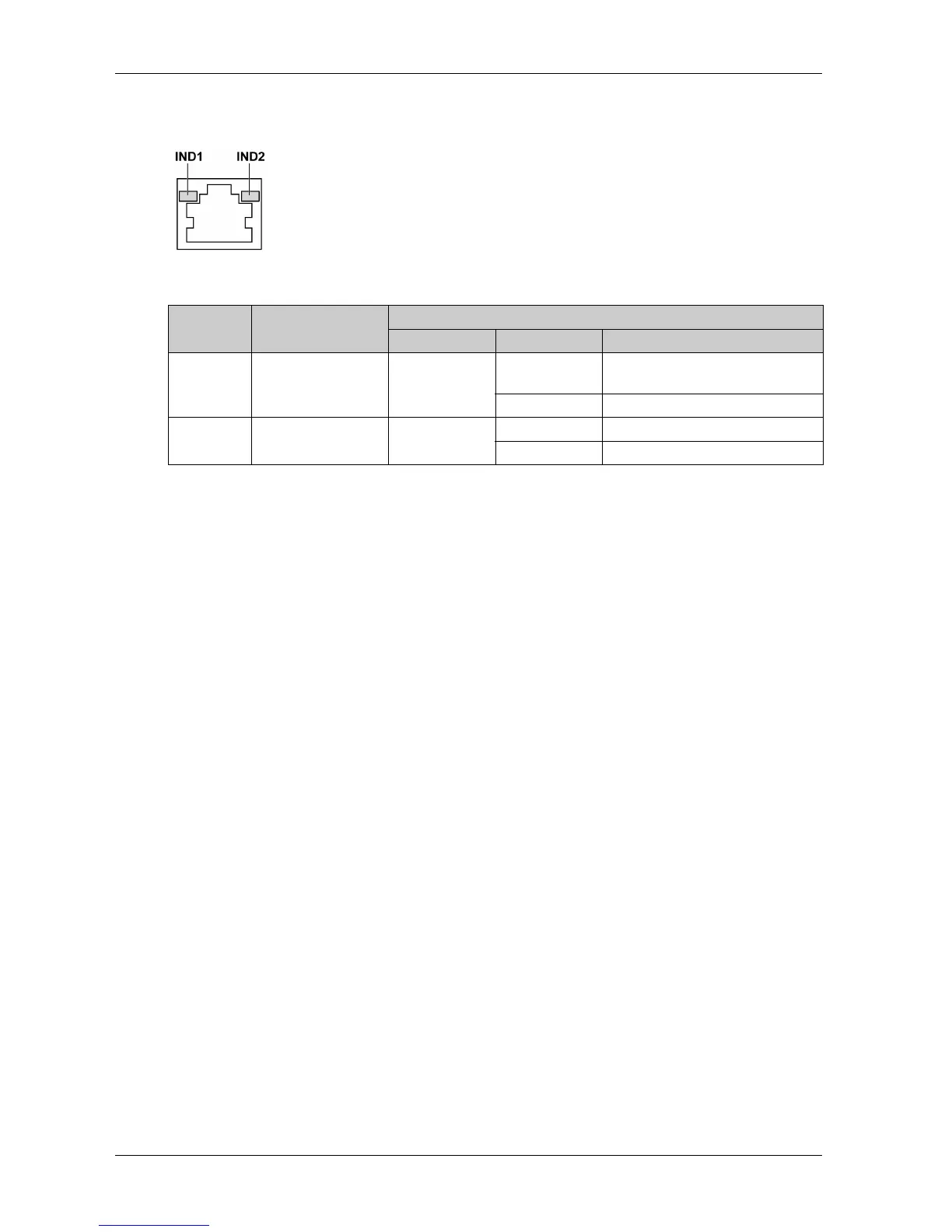 IND1 Ethernet status Green Off No connection or subsequent