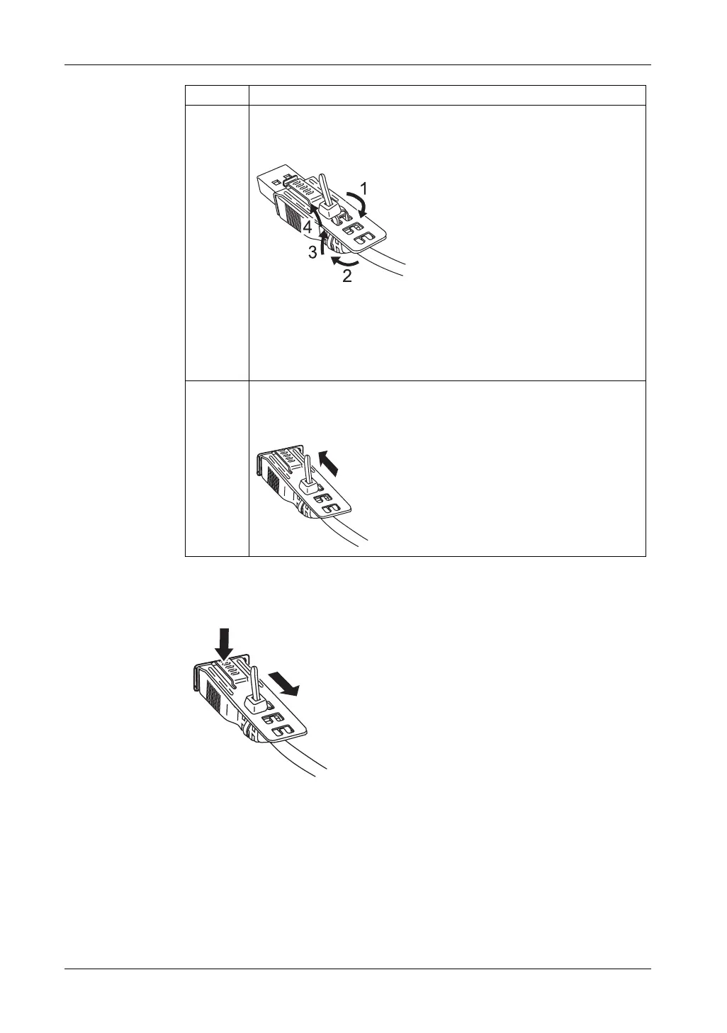 4 While pressing the grip on the clip, insert the cable from step 3 all the way into