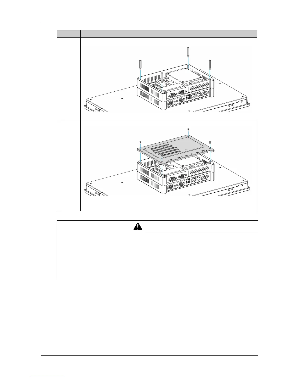 When fastening or removing screws, ensure they do not fall inside the Industrial Personal