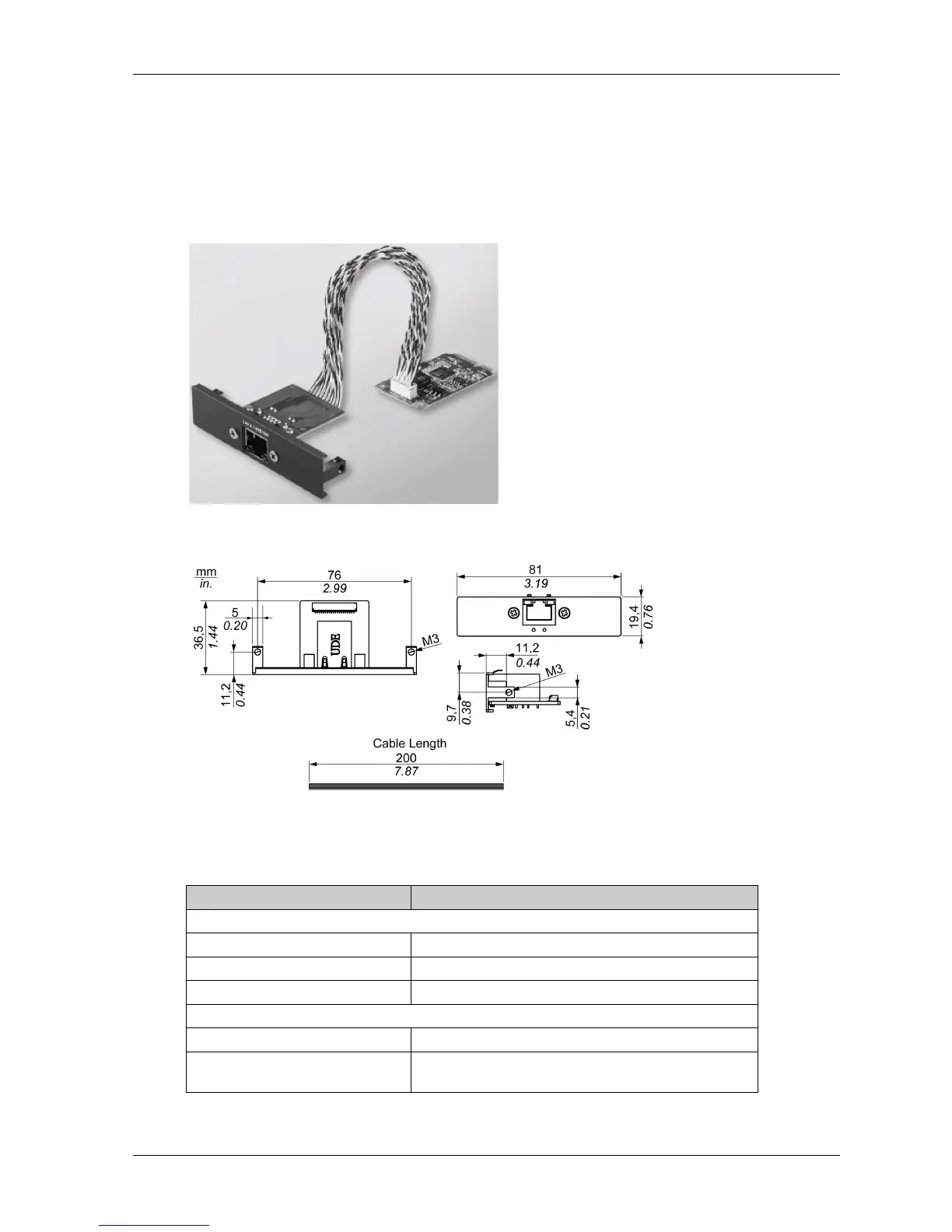 The table shows technical data for the Ethernet interface module: