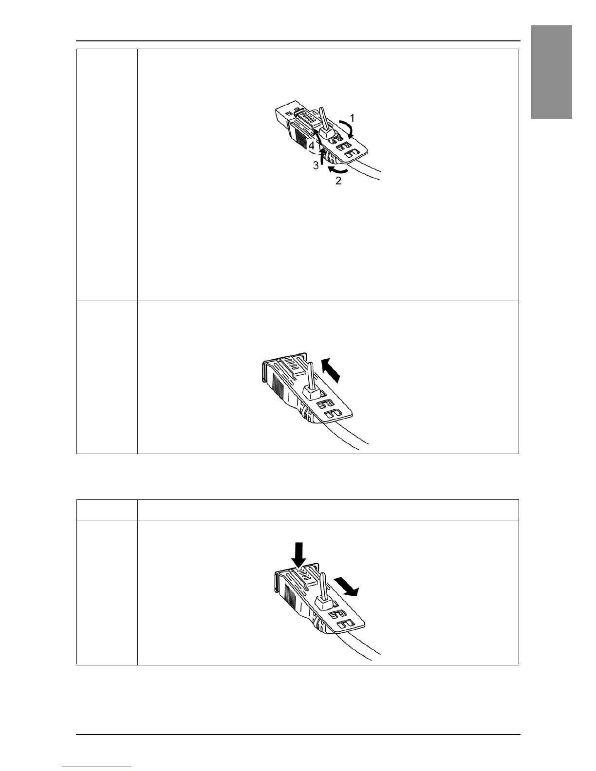 4 While pressing the grip on the clip, insert the cable from step 3 all