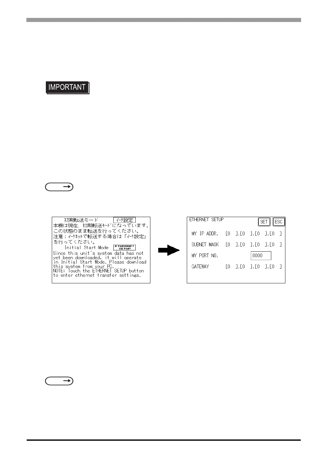 When the settings in the “Ethernet Setup” screen are not specified and data is sent, the ST unit’s factory-set IP