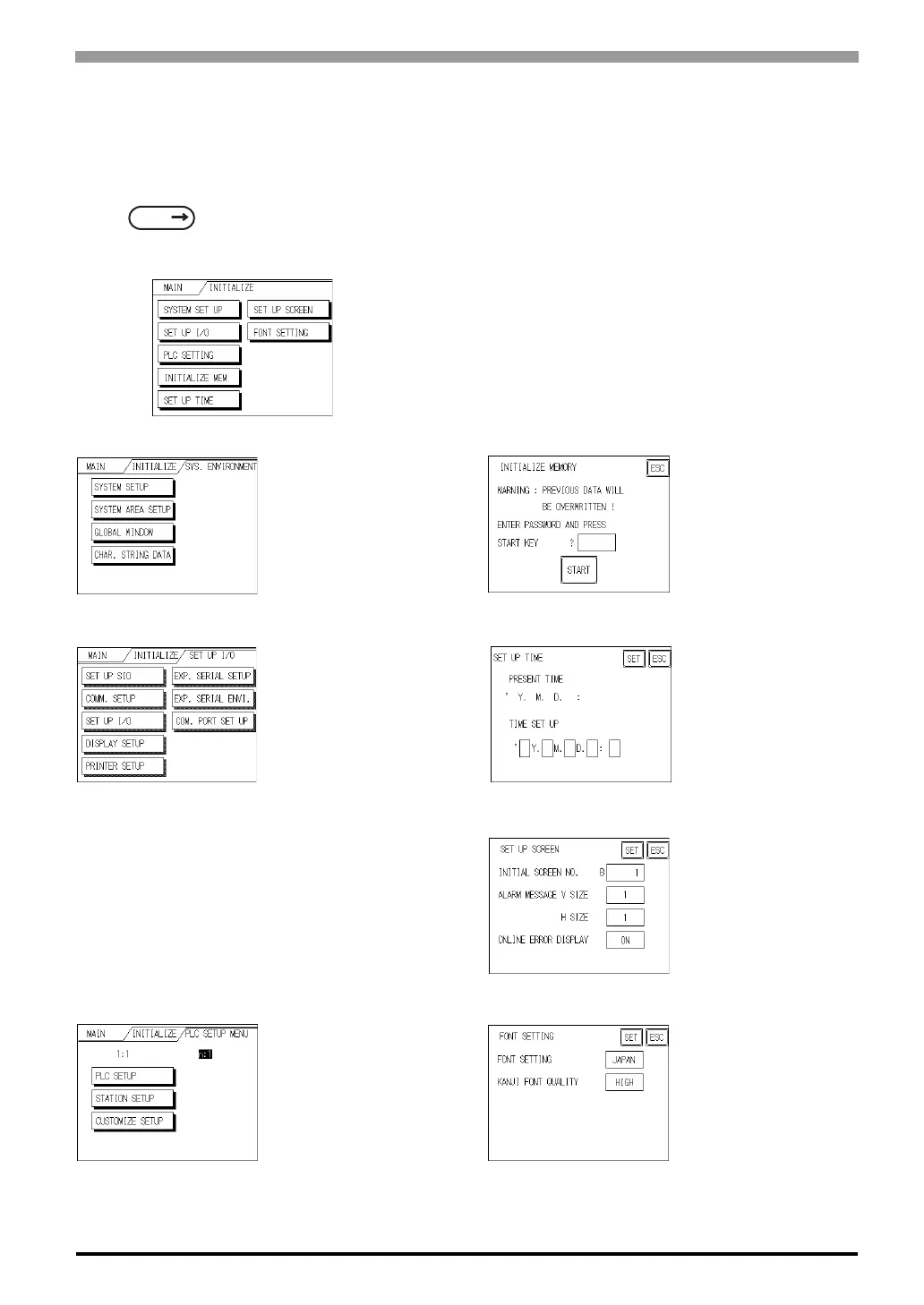 The INITIALIZE menu includes the following items.