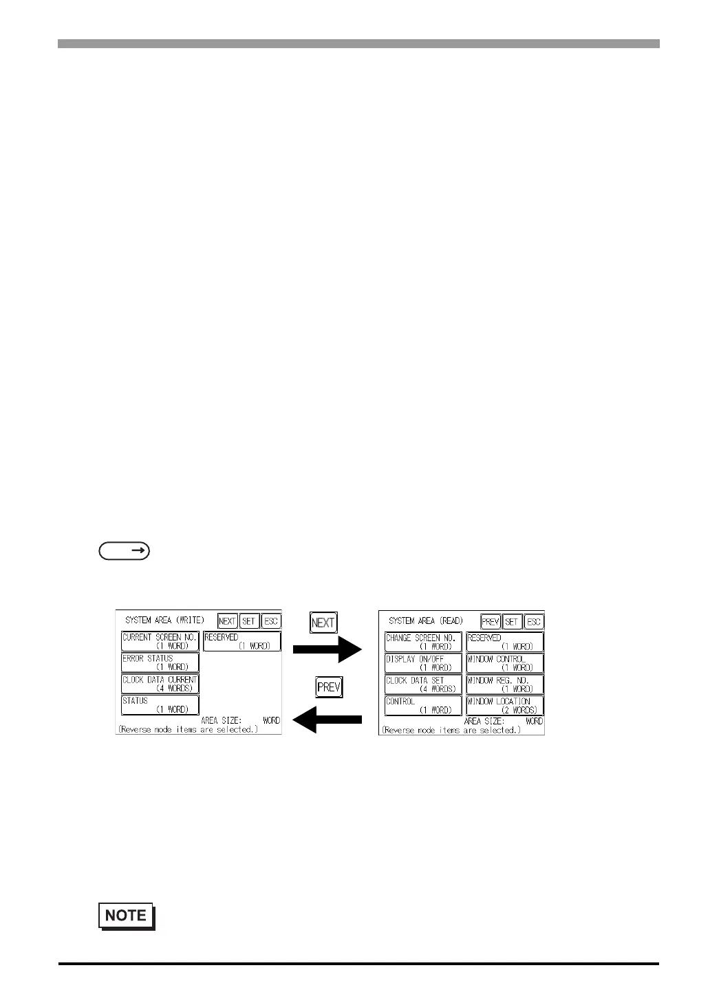 • The selected System Area items, as displayed on the screen, become the System Data Area.